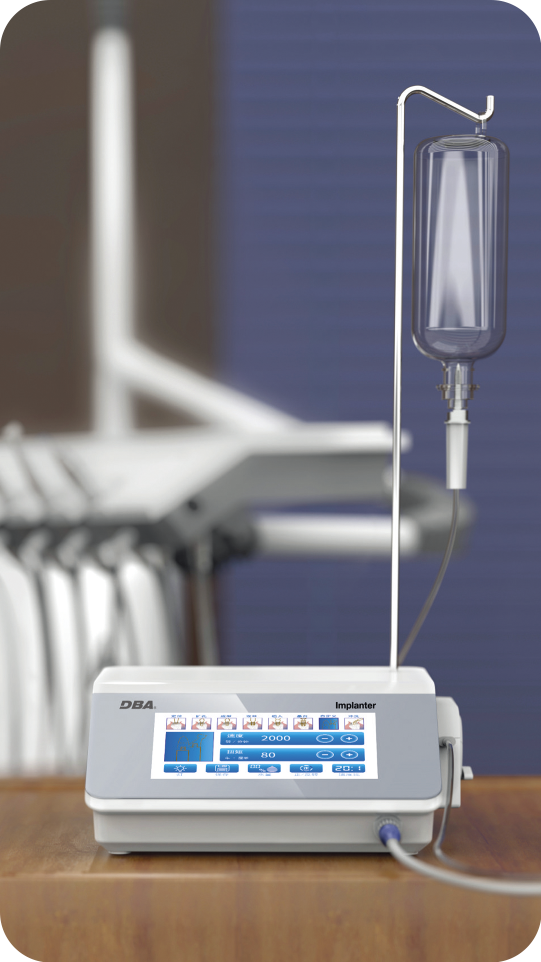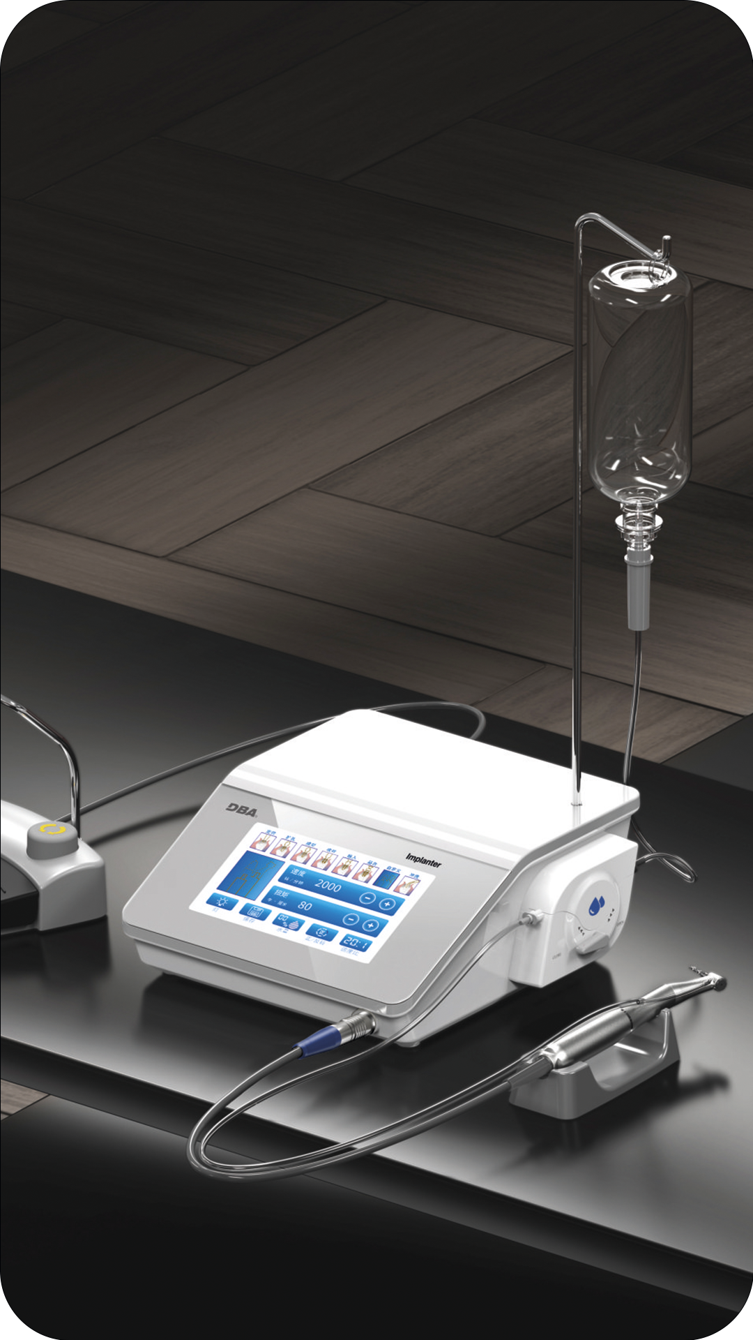 Физиодиспенсер Implanter LED с угловым наконечником WP-1 - передовой высокотехнологичный физиодиспенсер с низкоскоростным микромотором и угловым наконечником с подсветкой.